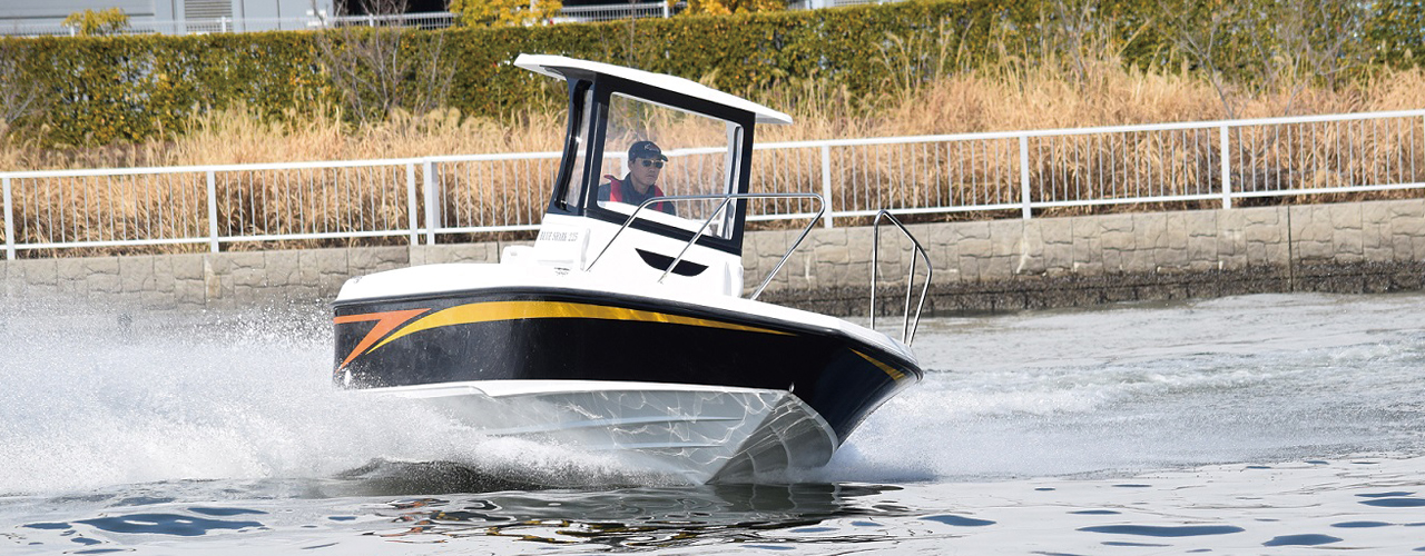 海上では、23フィート未満のボートにMax115馬力が不文律となっているかのようなプレジャーボート界隈に、国産バスボートメーカーとしての高馬力・高速艇の製造ノウハウを惜しげもなく注ぎ込んだ一艇をリリース。プレーニング姿勢はまさにバスボートのそれと見間違うほど。MAX175馬力の高馬力エンジンの搭載で、水を切り裂いて走るのではなく水の上を滑るような走行姿勢は、圧倒的なスピードと、高燃費、抜群の走波性を生み出します。