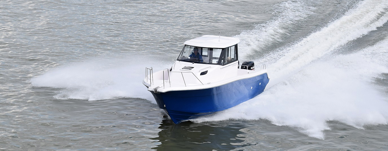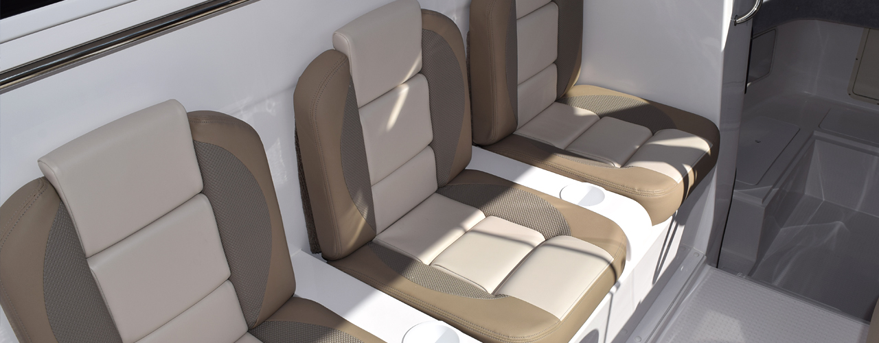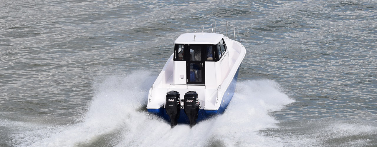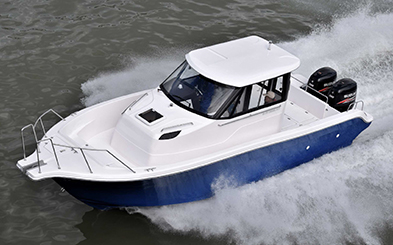 ブルーシャークシリーズで定評のある走波性、スピードにファミリーユースや大人数での釣りに対応する居住空間をプラス。200馬力×2基掛け(MAX400馬力)を受け止める強力なトランサムと高速性能の高いハルによって、31フィートの大きさにもかかわらず40ノットオーバーの高速走行を可能にしました。ラフウォーター時でも、船底に充填されたウレタンが波あたりの衝撃を和らげソフトな乗り心地をお約束。抜群のスピードと安定した走行性は、まさにボートを操縦する楽しさを再発見させてくれることでしょう。