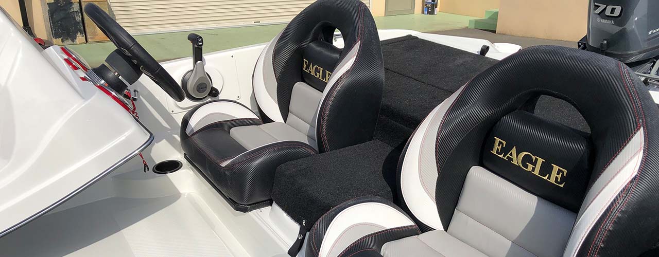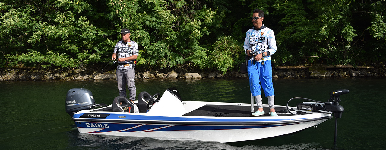 アルミボートからの乗り換えや、同サイズバスボートからの乗り換え、河川やダム湖、中小規模の湖、60馬力規制のトーナメントレイクに最適です。牽引免許不要のトレーラブルバスボートの最高峰を目指して細部に至るまでバージョンアップされたイーグル156は、15フィートのサイズからは想像もできないフロントデッキスペース、そしてスピードと安定性を高い次元で融合した、まさに日本国内のフィールドにジャストフィットのバスボートです。