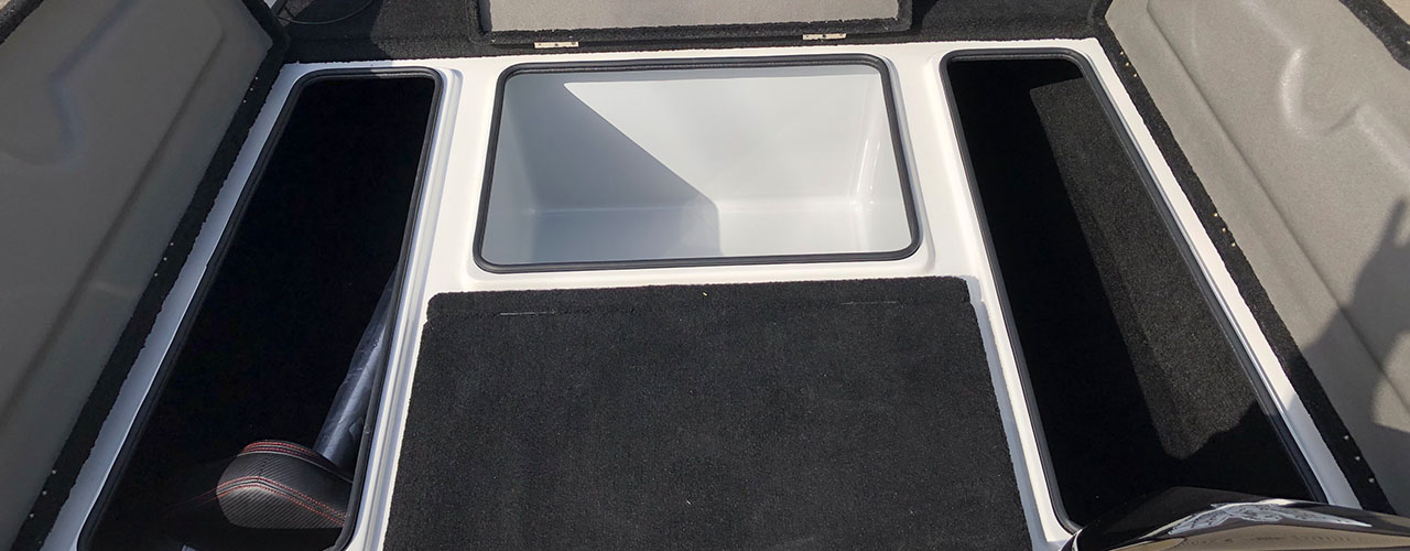 トランサム周りを中心としたハルの改良によって、プレーニングはより早くなり、横揺れの軽減などの安定性も、前モデルの155と比較して明らかに体感できるほど向上。さらに広くなったフロントデッキは、1サイズ上のボートに引けを取らない圧倒的な広さ。コンソールの改良で大画面化の進む魚探にも対応し、12インチの大画面魚探まで埋め込み可能。スターンデッキの自動排水機能の搭載で、定評のあったバッテリー周りを中心としたリアストレージもさらに使い勝手が向上しています。