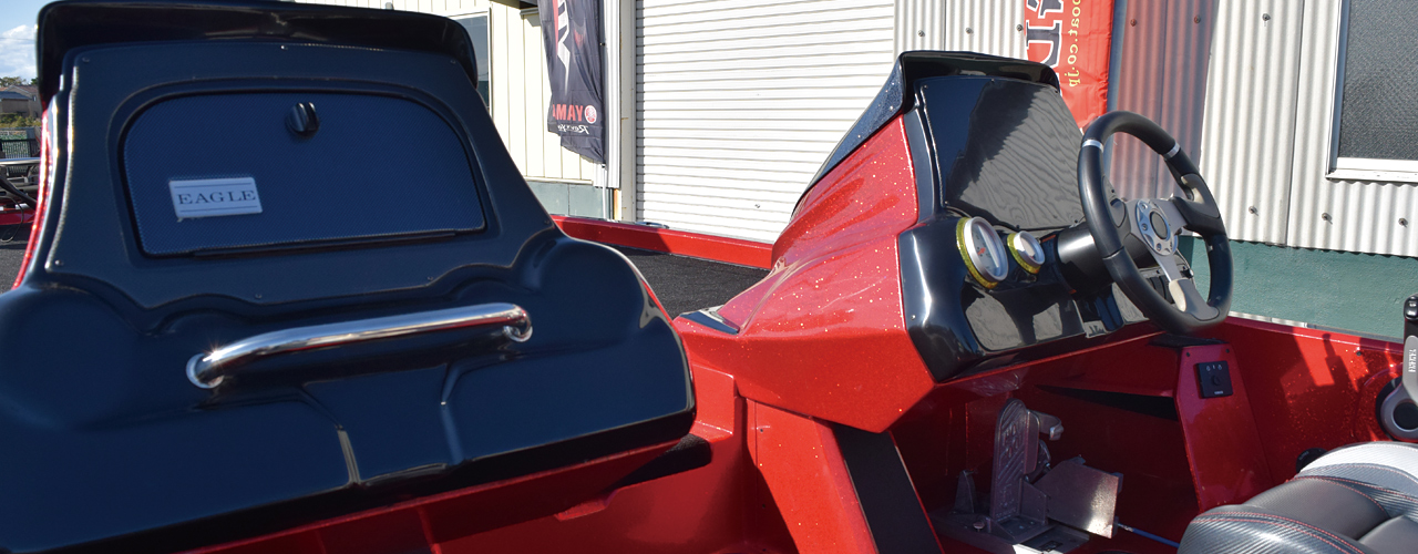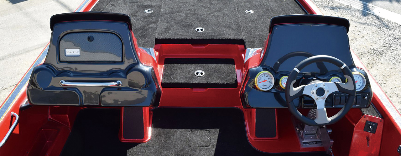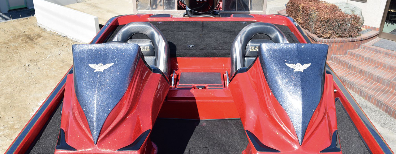 フルサイズバスボートの一つの完成形である205をベースに、年々高馬力化していくエンジンに適応させて最大300馬力まで対応するべくハルとトランサムを含めた船体構造を強化。さらに、オプションが不要なほど細部にまで豪華仕様を施した、まさにフラッグシップモデルというべき一艇。250馬力搭載時に2名乗船で時速120キロ(約75マイル)オーバーを記録し、セッティング次第によってはさらに上も狙えるポテンシャルを持ち合わせています。琵琶湖や霞ケ浦水系をはじめとした広大なフィールドで、より早く安全に目的地に到着し、フィールドを縦横無尽に駆け巡るトーナメンターに必要とされる機能をフル装備した、一切の妥協のないモデルです。